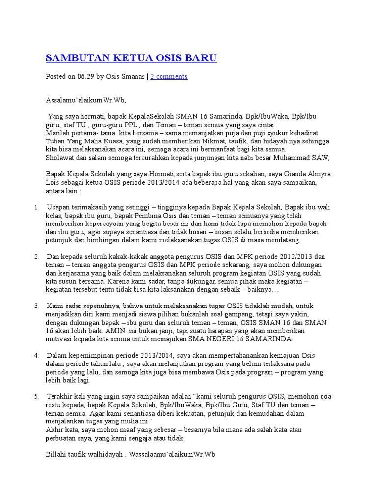 Kata sambutan ketua osis baru. Google has many special features to help you find exactly what youre looking for. Administrasi surat menyurat perlu diperhatikan salah satunya adalah cara membuat surat resmi yang biasa digunakan untuk sekolah osis bahasa inggris undangan perintah dinas edaran. Kementerian kesehatan ri 617 ind p indonesia.