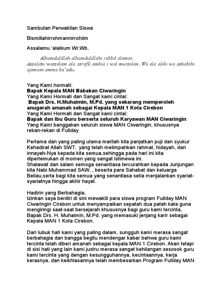 Pidato Kelas 6 Acara Perpisahan Siswa Kelas 6 Sdn 1 Kebondalem