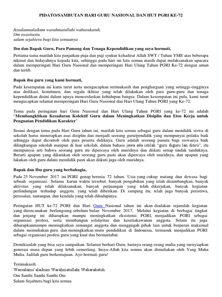 Sambutan Kepala Sman 1 Wanasaba Pada Hari Guru Ke 72 Tahun 2017