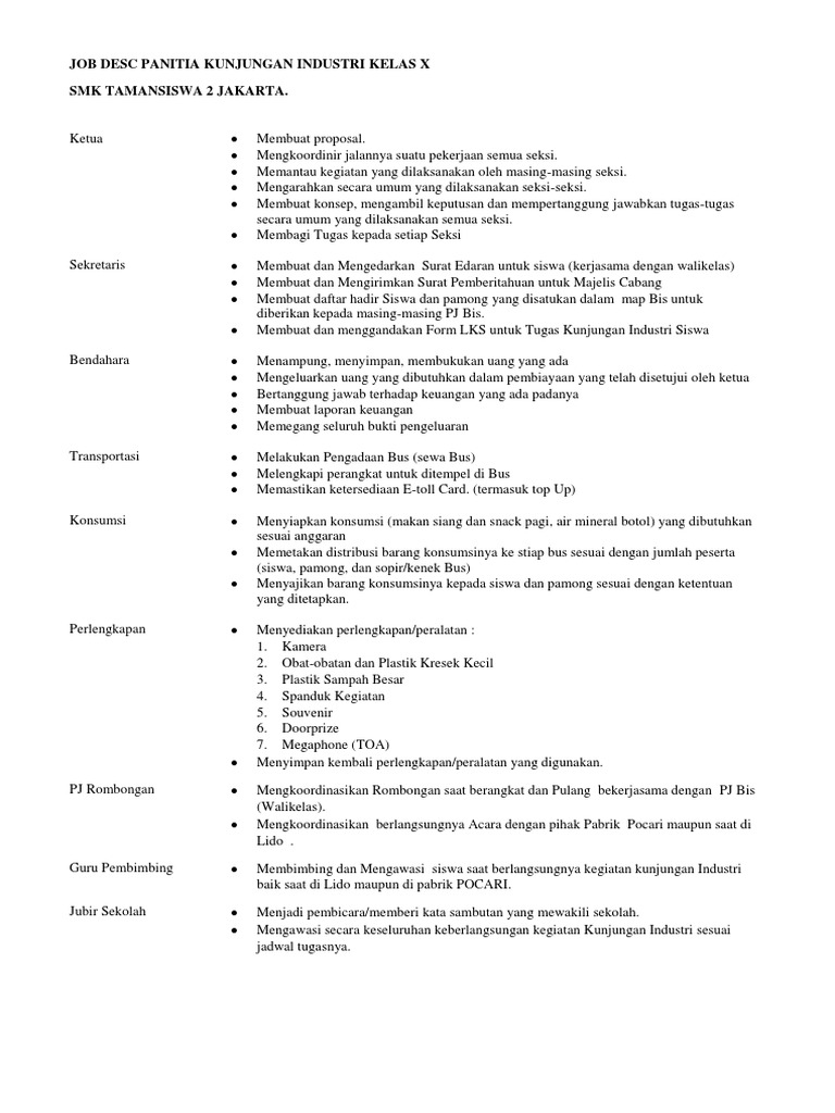 Job Desc Panitia Kunjungan Industri