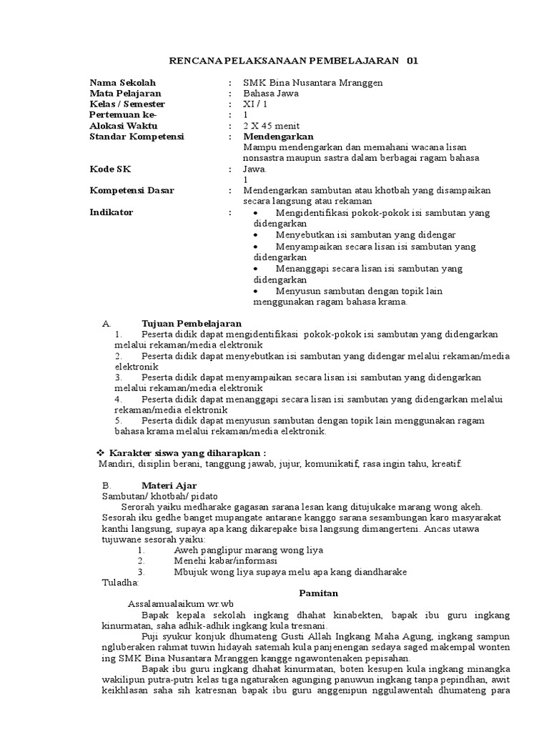 Rpp Bahasa Jawa Kelas Xi Sma Smk