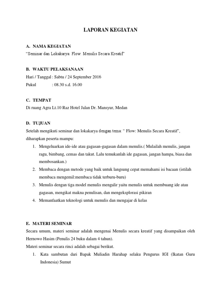 Laporan Kegiatan Seminar Menulis Kreatif Andrey 1