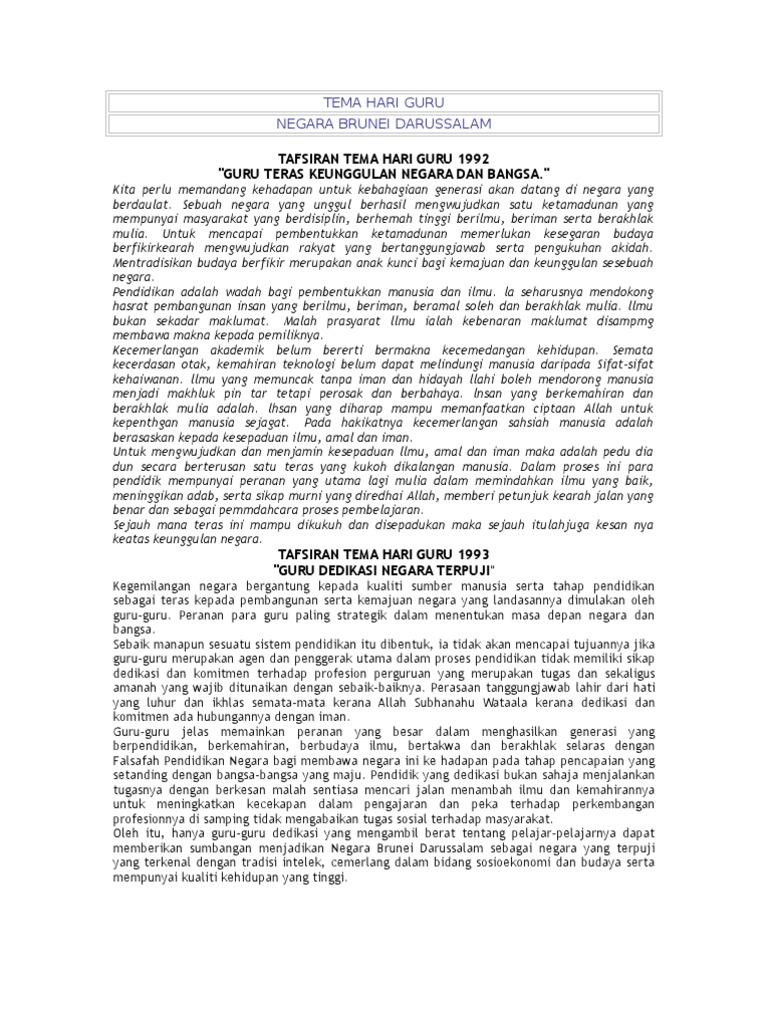 Bahan Tema Hari Guru Brunei 1992 1999 Pelbagai Artikel Tentang