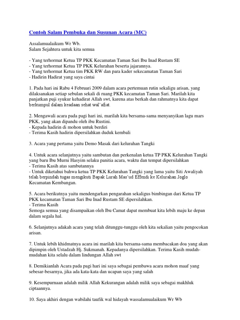 Contoh Salam Pembuka Dan Susunan Acara Mc