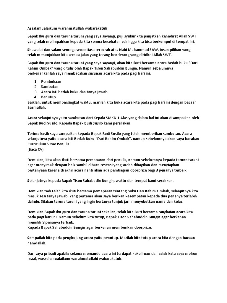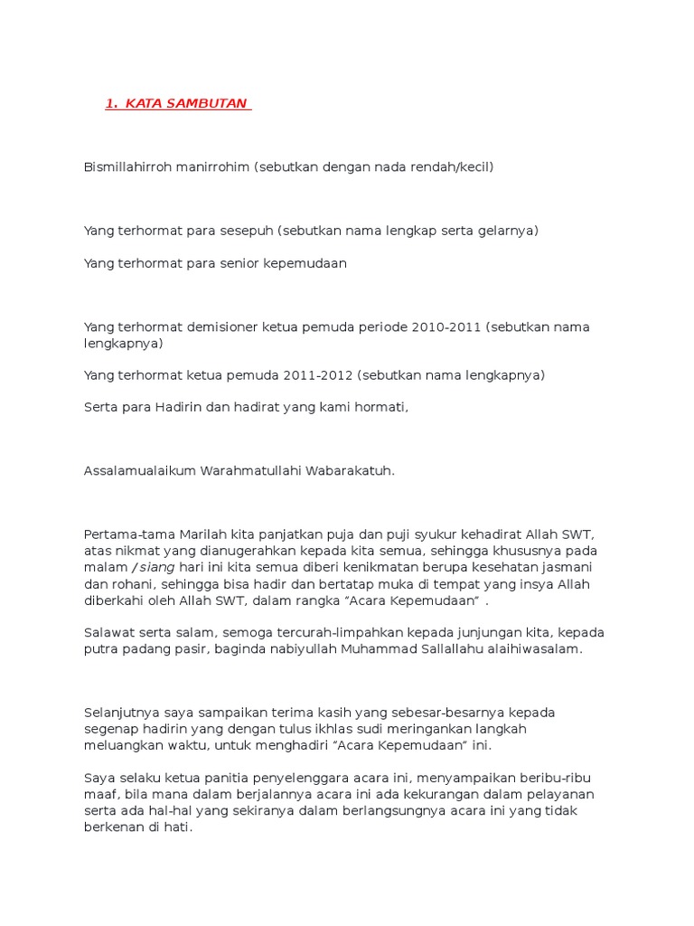 Kata sambutan di pagi hari. Slamet riyadi selaku pembicara yang kami hormati bapak rizky perdana selaku moderator dan hadirin peserta seminar yang berbahagia. Pas leaders cannot be more wrong as it is the responsibility of all malaysian parties in pakatan harapan coalition to champion the muslimmalay and non muslimnon malay agendas to demonstrate that malaysian nation building is not a zero sum game during the nine hour flight from kuala lumpur to qingdao with a two hour transit in fuzhou for my week long visit to china my thoughts. Sudah pasti sambutannya amat meriah.