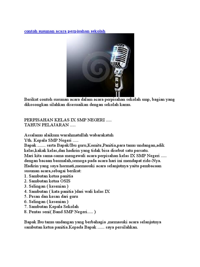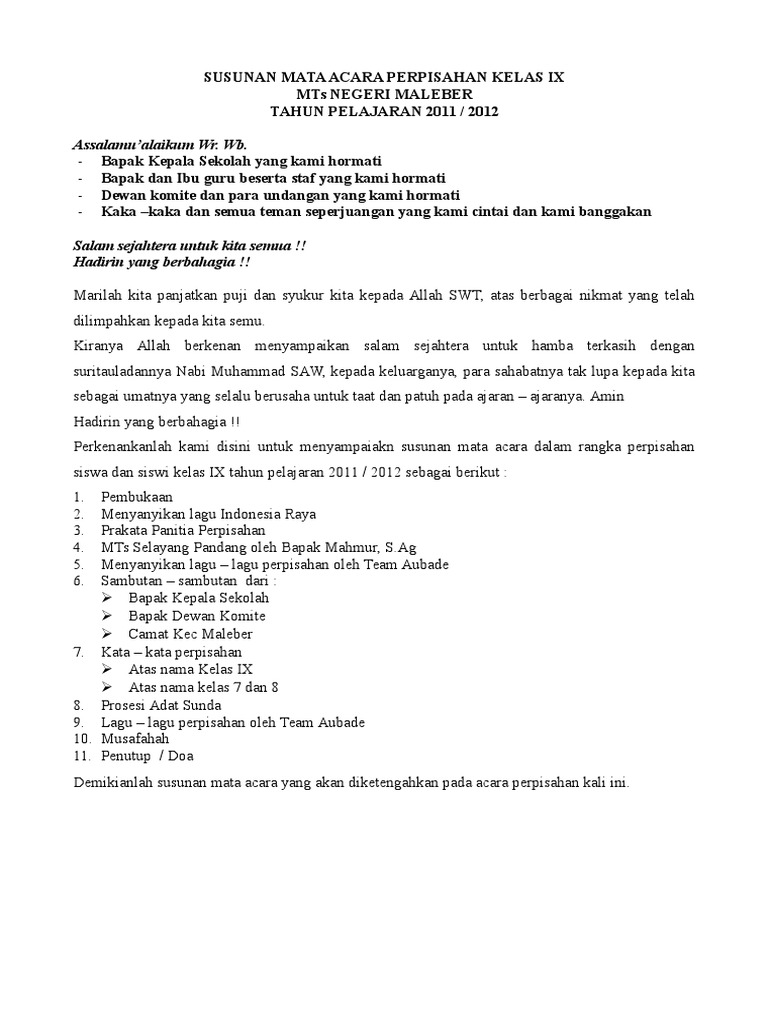 Contoh Susunan Acara Perpisahan Sekolah Docx