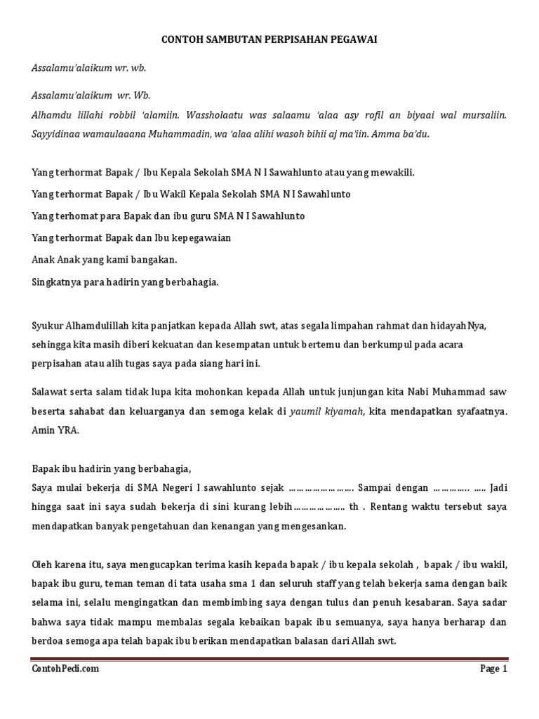 Contohpedi Com Sambutan Perpisahan Pegawai