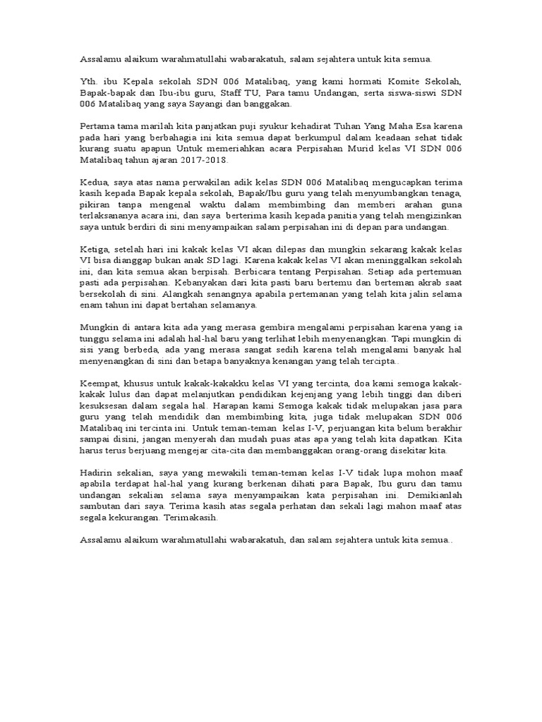 Pidato Kelas 6 Acara Perpisahan Siswa Kelas 6 Sdn 1 Kebondalem