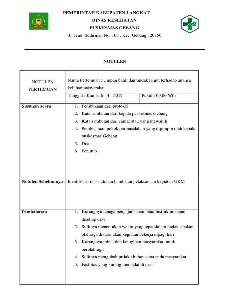 Form Notulen Umpan Balik Analisa Keluhan