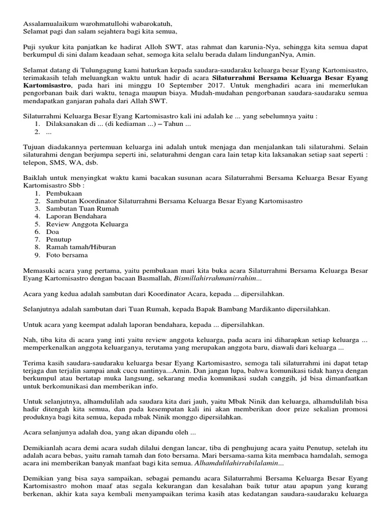 Contoh Sambutan Tuan Rumah Acara Arisan Keluarga Ato Sugiarto