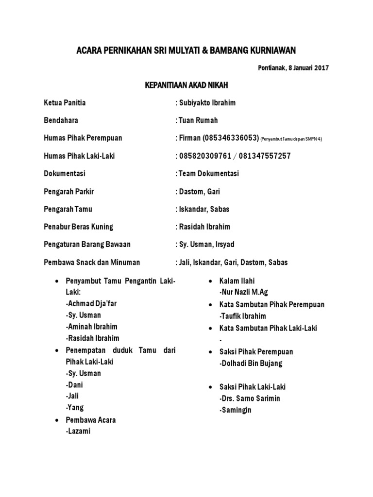 Contoh Susunan Acara Pernikahan Sentra Kelezatan Online