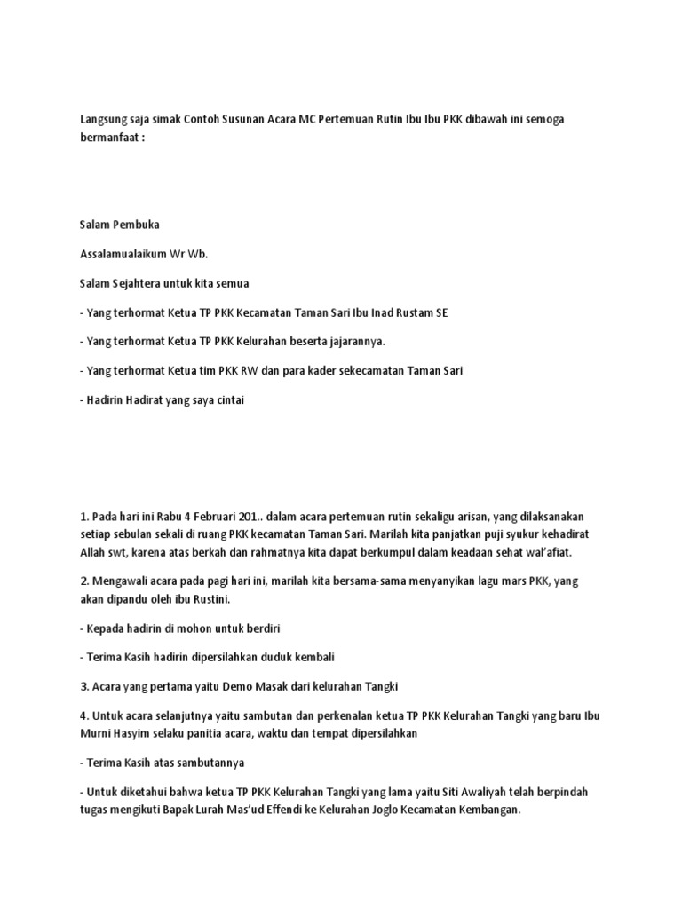 Contoh Susunan Acara Mc Pertemuan Rutin Ibu Ibu Pkk Muda Mudi