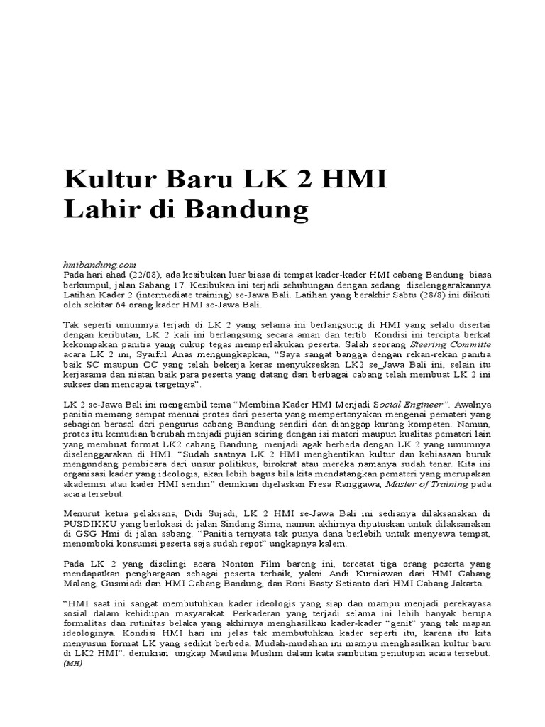 Jk Usul Agar Materi Latihan Pengkaderan Hmi Direvisi Hmi Juga Harus